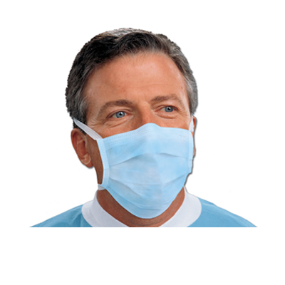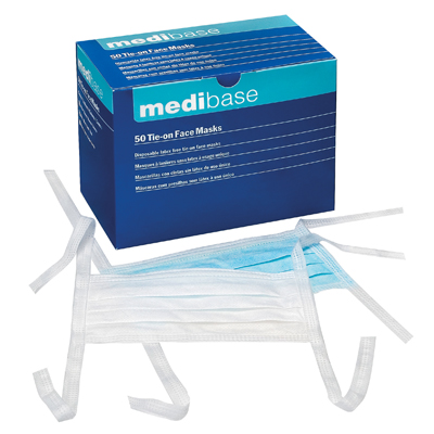 High filtration tie masks with a 3 ply 'fluid resistant' media.