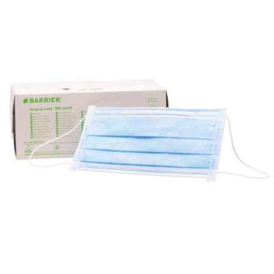 BARRIER® Type II irritant-free earloop face masks are a blue surgical mask that has a high particulate filtration efficiency of 98% down to 0.1 micron and a high bacterial filtration efficiency of 98% down to 3.0 micron.