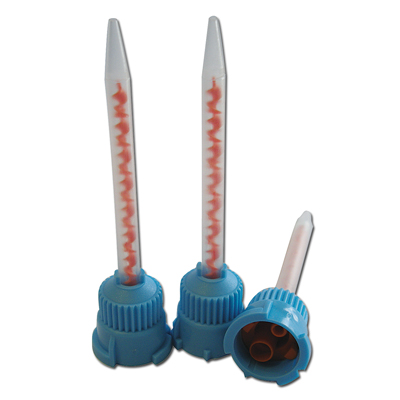 Crown and Bridge red spiral mixing tips for composite or crown and bridge materials.